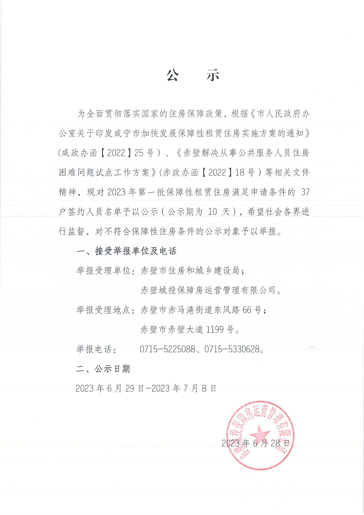赤壁城投保障房碧水云谷37户人员名单公示