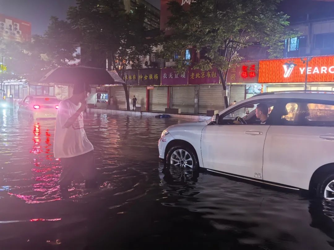 受强降雨影响,金三角停车场严重积水,最深到膝盖。赤壁城发集团汽车公司负责人江军迅速赶到现场,立即联系相关单位,将停车场变压器等电子设备进行紧急断电;对停车场所有排水管进行清淤,加速排水;联系车主进行移车,保护市民车辆安全;协助相关单位,对停车场人员进行疏散。